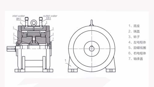 電渦流制動器作為一種負載,主要用來測量動力機械特性的檢驗設備,它和其他控制測量儀可組成電渦流測功機?捎糜趦(nèi)燃機、電機、燃氣輪機、汽車及其動力機械部件的性能測試,與其他測功裝置相比,CW系列測功裝置具有更高的可靠性、穩(wěn)定性,和實用性。 電渦流制動器主要特點: 1.結(jié)構(gòu)簡單,運行穩(wěn)定,價格低廉,使用維護方便。 2.采用水冷卻,噪音低,振動小。 3.輸入轉(zhuǎn)速范圍寬。 4.歷次控制功率小,采用單相直流電源。 5.與測控系統(tǒng)配套,可實現(xiàn)自動化控制。 6.作為制動器使用,具有制動力大,且穩(wěn)定性能好等優(yōu)點。 電渦流制動器工作原理: 1.CW系列電渦流制動器的基要結(jié)構(gòu)(見下圖)