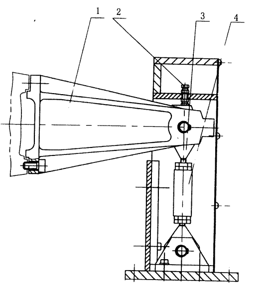 圖四(b)YP1900測力機(jī)機(jī)構(gòu)示意圖 1、制動臂 2、固定螺栓 3、活節(jié)螺栓 4、拉壓力傳感器
