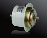 磁粉離合器是由主動(dòng)轉(zhuǎn)子(輸入軸)、從動(dòng)轉(zhuǎn)子(輸出軸)、含激磁線圈的磁軛組成,三部分相對(duì)同心裝配,形成了一個(gè)可以相對(duì)轉(zhuǎn)動(dòng)的整體,在主動(dòng)轉(zhuǎn)子和從動(dòng)轉(zhuǎn)子之間的環(huán)形空隙(工作腔)內(nèi)填有高導(dǎo)磁性的合金磁粉。 激磁線圈無電流通過時(shí),工作腔中的磁粉呈松散狀態(tài)。在主動(dòng)轉(zhuǎn)子所產(chǎn)生的離心力的作用下,磁粉被均勻地甩在主動(dòng)轉(zhuǎn)子的內(nèi)壁上,主、從動(dòng)轉(zhuǎn)子之間無力的相互作用,磁粉離合器處于分離狀態(tài),沒有轉(zhuǎn)矩的傳遞。激磁線圈有電流通過時(shí),磁軛中產(chǎn)生工作磁通,工作腔中的磁粉沿磁通方向呈鏈狀連接起來(形成磁粉鏈),磁粉離合器就是靠此時(shí)磁粉與磁粉、與工作面之間的摩擦力和磁粉鏈之間的抗剪力來傳遞轉(zhuǎn)矩,磁粉離合器處于結(jié)合狀態(tài)。切斷電流時(shí),磁通隨激磁電流的消失而消失,磁粉在重力的作用下又重新處于松散狀態(tài),并在離心力的作用下,被甩在主動(dòng)轉(zhuǎn)子的內(nèi)壁上,磁粉離合器又處于分離的狀態(tài)。 磁粉離合器在收卷和放卷中連續(xù)滑差采用時(shí),壽命因使用條件(相對(duì)滑差速度等)而轉(zhuǎn)變,但一般在容許連續(xù)滑差功率下用到時(shí),在額定電流狀況下,扭矩下滑最低額定扭矩時(shí)的磁粉壽命約為5000~8000小時(shí)。